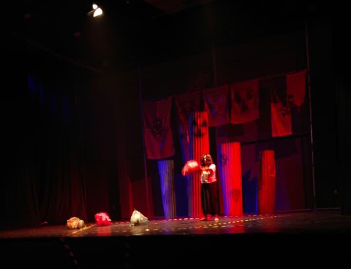 Jombang, 7 Oktober 2025 – Minggu, 05 Oktober 2025 di Gedung Kesenian Jombang, tepat pukul 19.30 wib., gedung pertunjukan dibuka. Memasuki ruang pertunjukan itu kami disugguhi panggung remang dominan jingga kemerahan dengan properti industrial berupa seng bergelombang yang ditata menyerupai cerobong-cerobong lengkap dengan hiasan vandal cat semprot. Dibelakangnya terpasang beberapa bendera dalam berbagai ukuran, dominan berwarna merah dan jingga, dengan gambar tengkorak simbol yang sering kita dapati pada bendera bajak laut atau yang baru-baru ini sempat booming, One Piece. Simbol-simbol ini membawa ingatanku pada bentuk terror, kekuatan bahkan mungkin anarkisme. Kemudian disusul dengan suara sirine dengan volume cukup keras dan asap yang mengaburkan pandang dan meneror pernafasan. Kemudian teror Teater Api Indonesia (TAI) lewat sajian berjudul TOEAN MARKOEN dimulai.