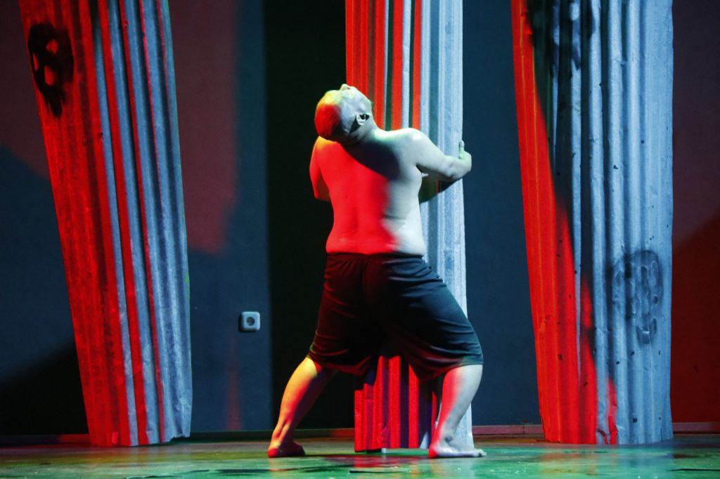 Pertunjukan pertama diawali dengan adegan kedatangan 2 orang berkepala anjing yang mengenakan jas. Keduanya membawa karung berisi botol plastik.