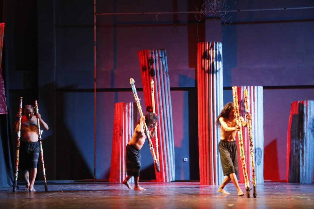 Adegan demi adegan terus bergerak. Sejumlah benda seperti botol palstik, karung plastik, bambu dan seng yang dihadirkan menjadi representasi dari peradaban dan dunia industri yang dihuni manusia saat ini.